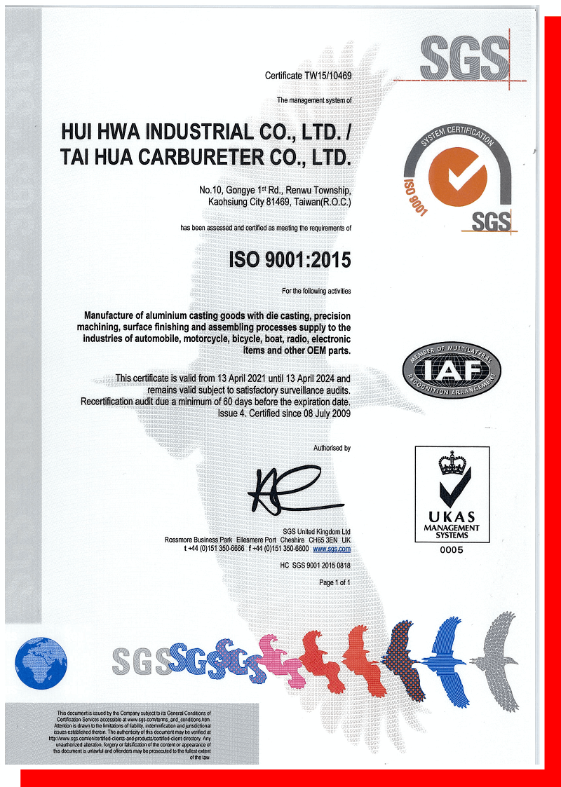 We are pleased to announce HUI HWA INDUSTRIAL has met all the requirements to recertify to the ISO 9001:2015 Standard. We are committed to excellence and providing you with the best quality, service and on-time delivery. See our ISO 9001:2015 certificate.